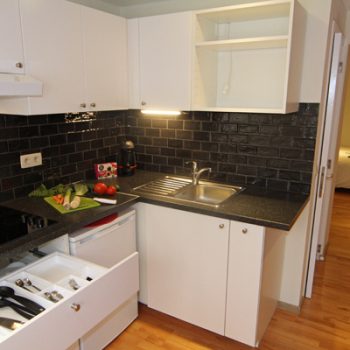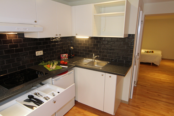Kitchenette well equipped with fridge & deep freezer, senseo, water boiler, cooking plates, microwave/grill and all cutlery - plates - glasses - pots - pans - etc.