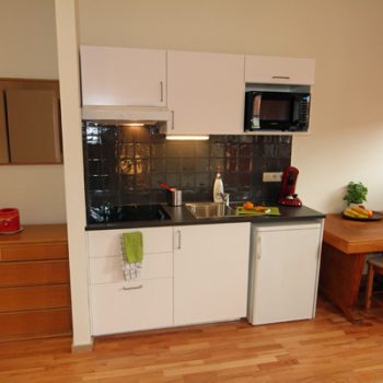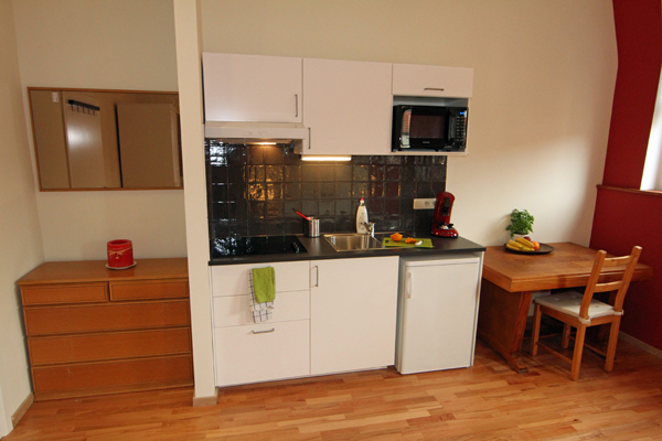 Kitchenette well equipped with fridge, senseo, water boiler, cooking plates, microwave/grill and all cutlery - plates - glasses - pots - pans - etc.