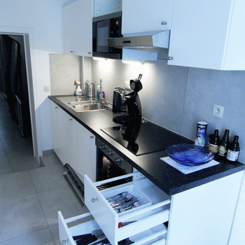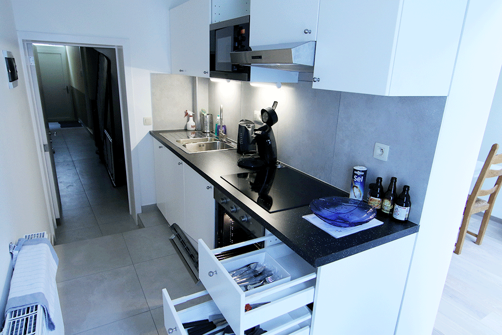 Kitchen : Common kitchen, well equipped with fridge, senseo, water boiler, cooking plates, microwave/grill and all cutlery - plates - glasses - pots - pans - etc.